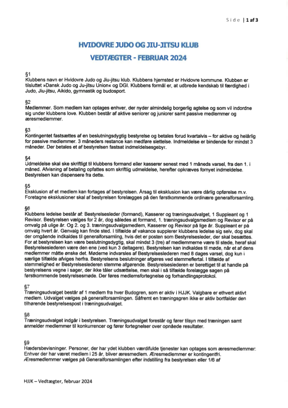 Hvidovre Judo og Jiu-jitsu Klubs vedtægter: